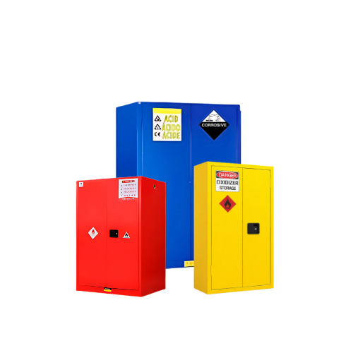 Lemari khusus untuk bahan kimia pengoksidasi yang dirancang untuk memberikan perlindungan optimal dan mencegah reaksi berbahaya. Sistem penyimpanan ini membantu menjaga stabilitas bahan kimia dalam lingkungan laboratorium yang aman dan terkendali.