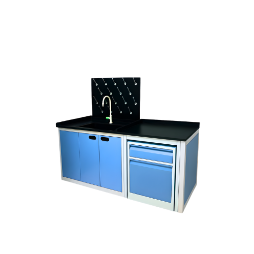 Sink Bench Maxlab adalah meja laboratorium dengan sink terintegrasi yang dirancang untuk memudahkan pembersihan peralatan, mencuci tangan serta aktivitas berbasis air. Dengan desain higienis, material tahan lama,dan fungsi yang efisien, meja ini mendukung alur kerja laboratorium yang rapi dan profesional.